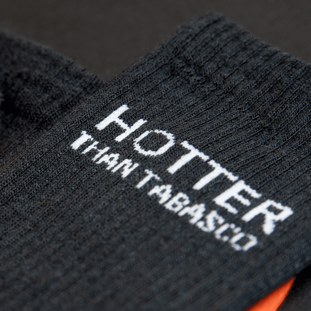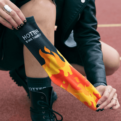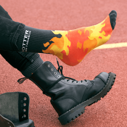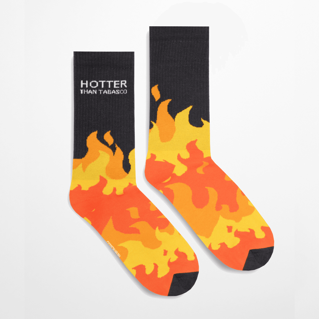 גרבי ספורט מכותנה איכותיות במיוחד, שיעניקו לכם נוחות מקסימלית לאורך כל היום. הדפס הלהבות האדום הבולט מוסיף טוויסט של אומץ ואישיות לכל הופעה.