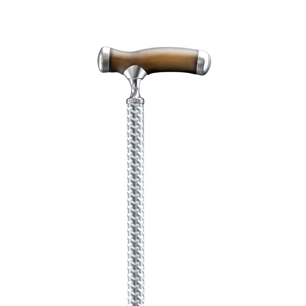 מקל הליכה קל, חזק ונוח במיוחד, עשוי אלומיניום איכותי בעיצוב גאומטרי אפור אלגנטי.