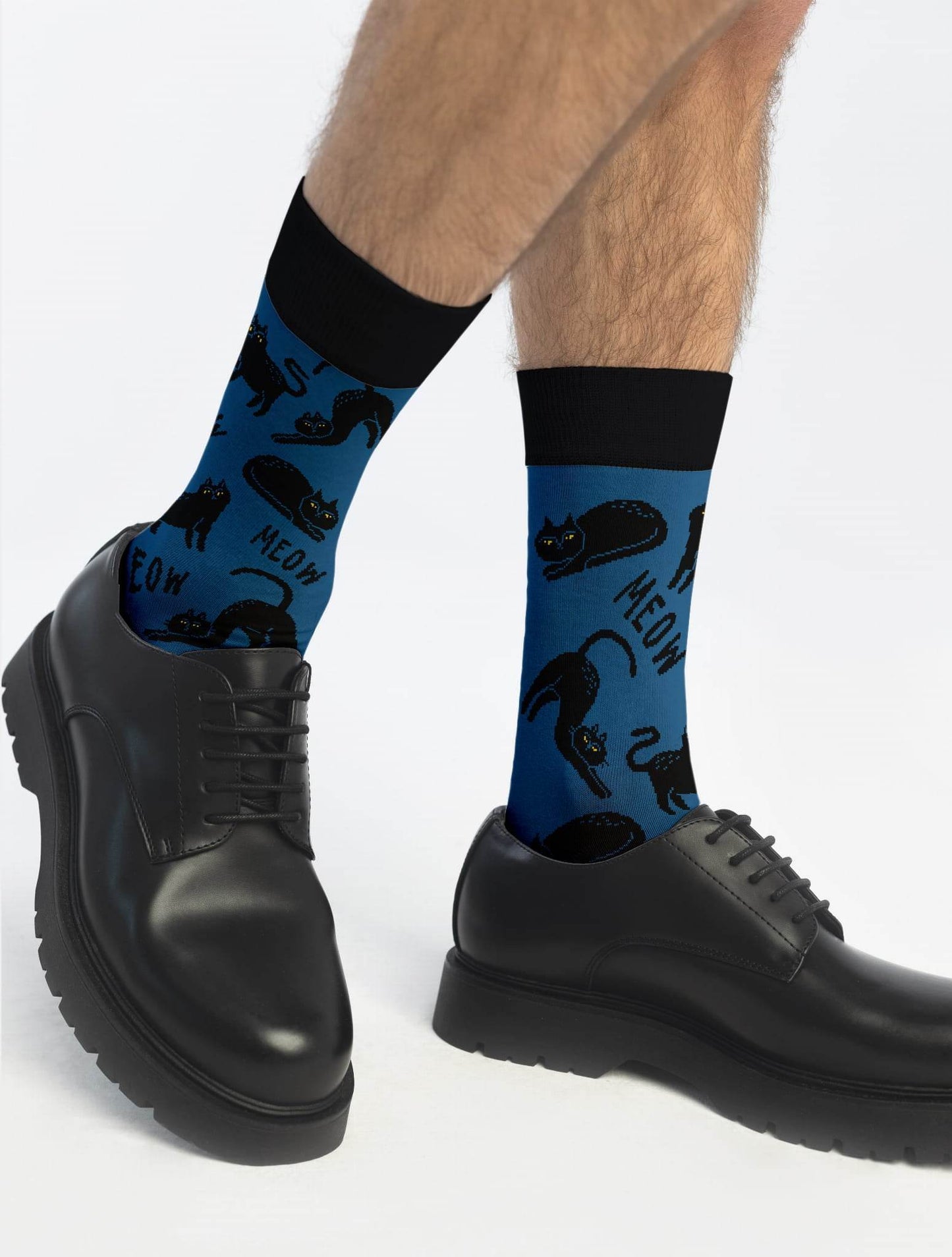 דגם חתול מסתורי של בננה סוקס מביא טאץ' מסתורי וחתולי אל כפות הרגליים. עם הדפס של חתולים שחורים על רקע כחול ג'ינס, הגרביים האלו משלבות נוחות אופטימלית עם מראה ייחודי ומלא אופי.